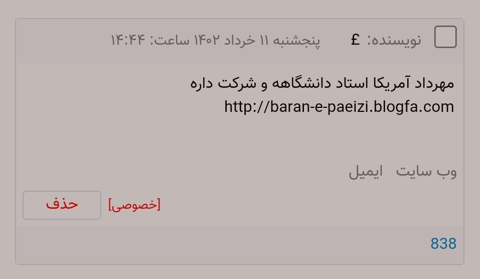 یادم باشه از این به بعد، برای کامنتا، تاریخ و ساعت خونده شدن و پاسخ دادن بنویسم ...
