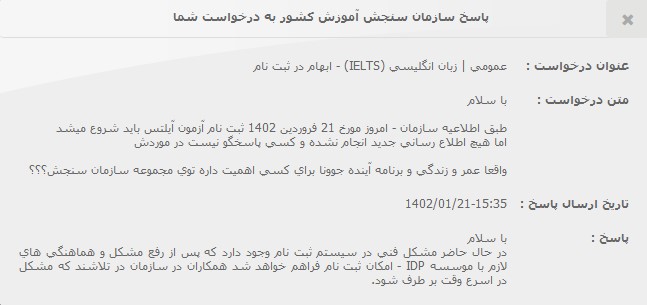 مفرد سُعَدایعنی دوست دارم بعد از ۱۰ روز از تعویق شروع ثبت نام آزمون، جوابی که سنجش توی سامانه پاسخگویی داده رو بذارم اینجا، بعد با ایمیلی که بدون پرسش و پیگیری، از دانشگاه دلفت اومده و خودشون توضیح دادن که بخاطر تعداد زیاد متقاضی، هنوز نتونستن تمام اپلیکیشنها رو بررسی کنن و عذرخواهی کردن که مجبورن یک هفته اعلام نتایج رو عقب بندازن، مقایسه کنم!