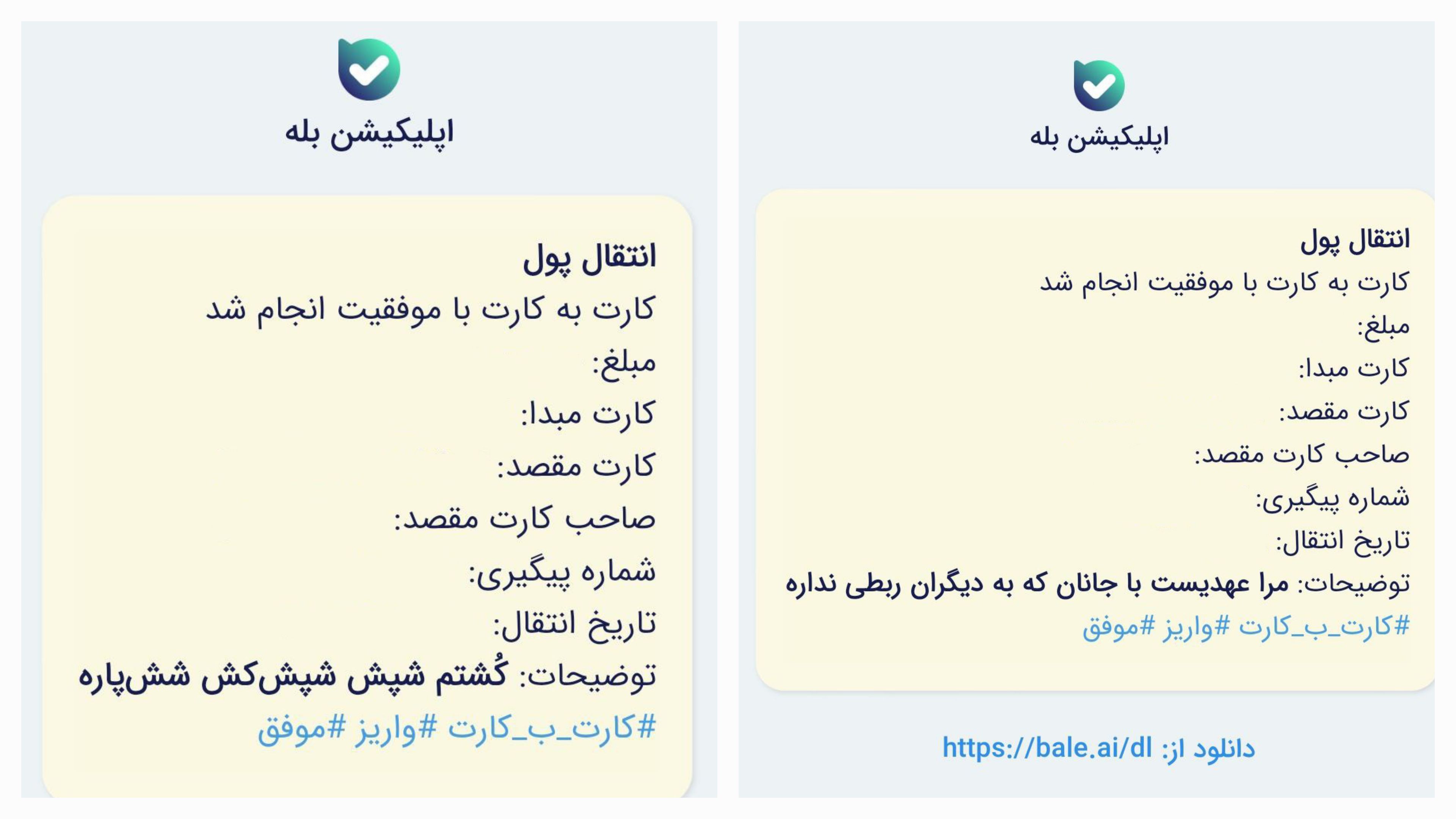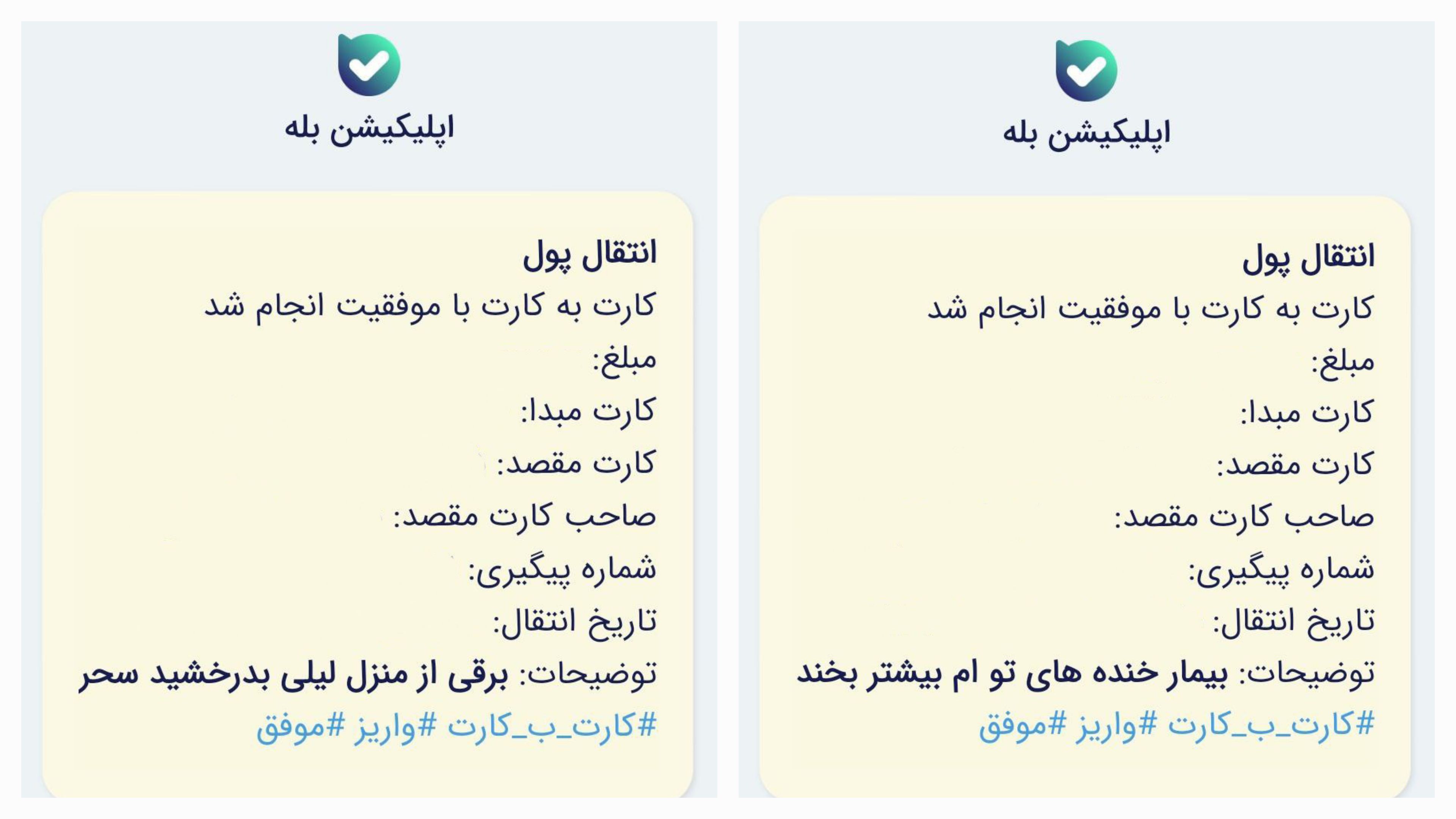 تفاوت ماهوی شرح واریز به حساب خان داداشم (بالا)