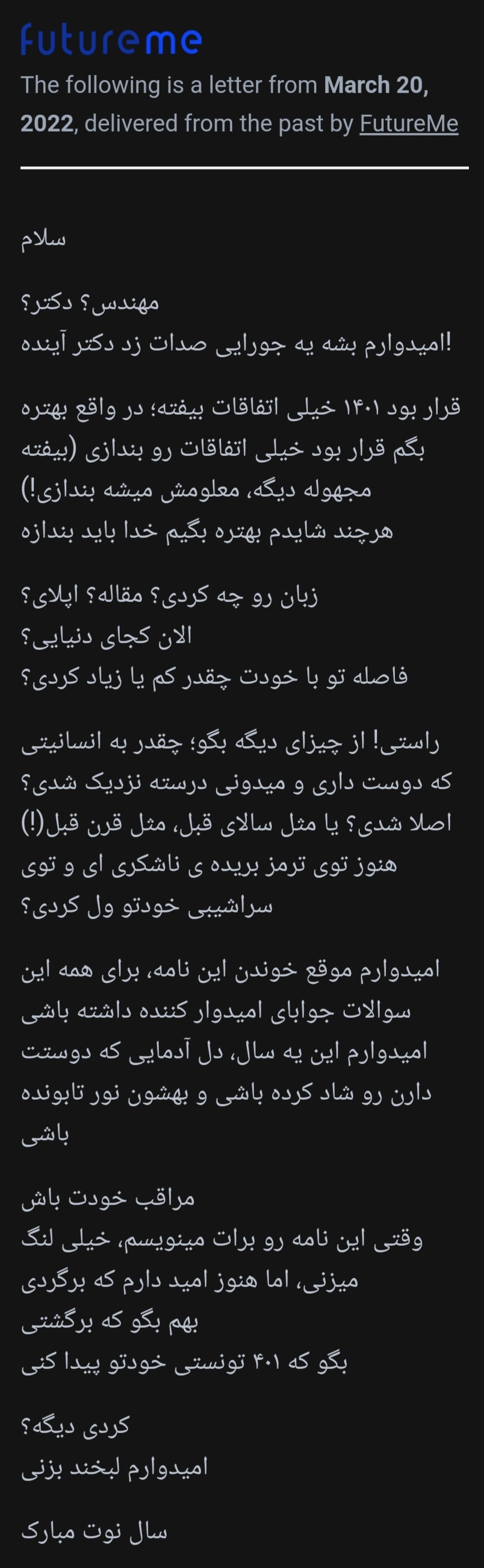 مفرد سُعَداتعطیلات سال نو بنده اینگونه گذشت: