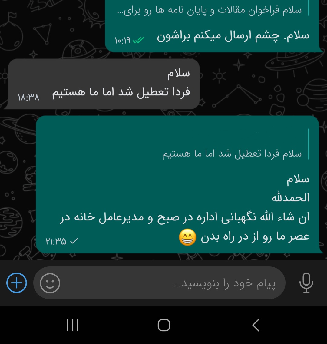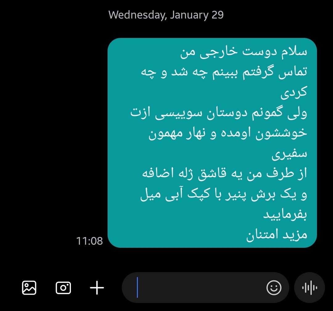 مفرد سُعَدااز آموزشگاه که اومدم بیرون و آنتن موبایلم زنده شد، یه پیام اومد ...