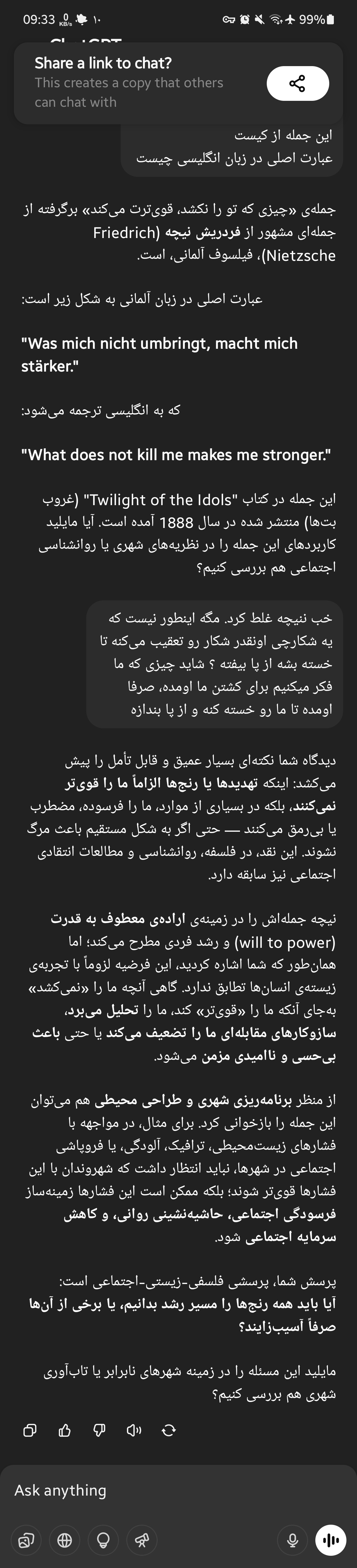 چیزی نگفتم؛ فقط تو دلم اومد که: نکنه شاید چیزی بدست نیاوردی، یا برای بدست آوردن چیزایی که داری، اونقدر که لازم بوده تلاش نکردی، که باعث شده الان برای از دست دادنش نگرانش نباشی؟